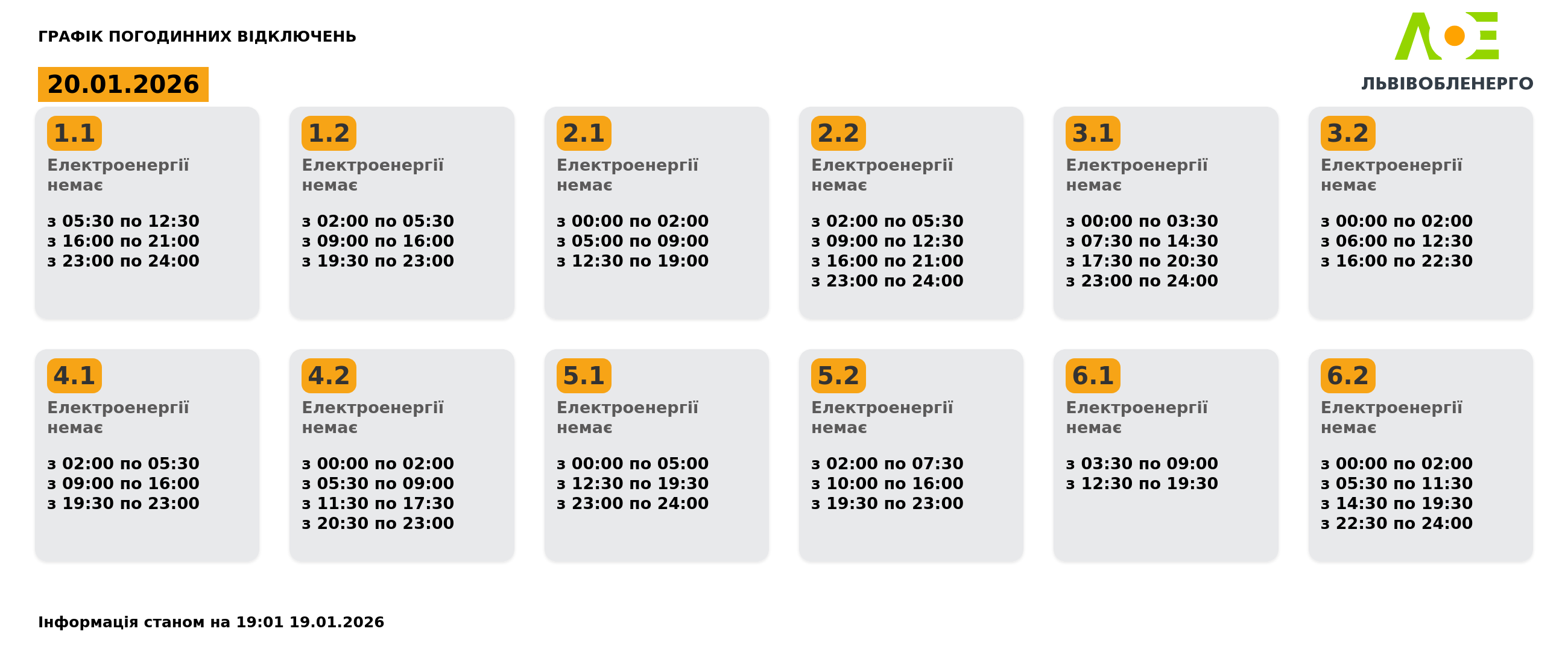 Стартовий графік вимкнень електроенергії 20 січня на Львівщині
