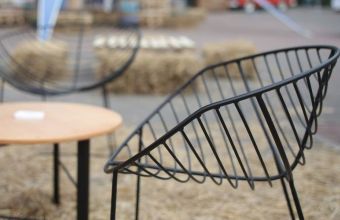 Виготовили стільці Dobro Design Studio. До слова, раніше компанія також виготовила та подарувала вуличні меблі для тимчасового модульного містечка в Стрийському парку.