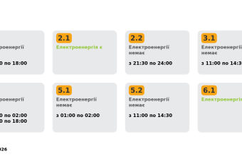 Він відрізняються від попереднього тим, що енергетики скасували вечірні відключення світла у тьох групах - 2.1, 6.1 і 6.2, які мали розпочатися о 22.00 і закінчитися о 24.00. У групі 2.2 світло вимикатимуть, як передбачено у попередньому графіку, з 21.30 до 24.00.