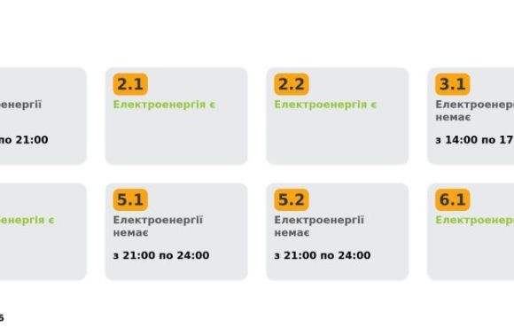 Група 5.2. Електроенергії немає з 21:00 до 24:00.
