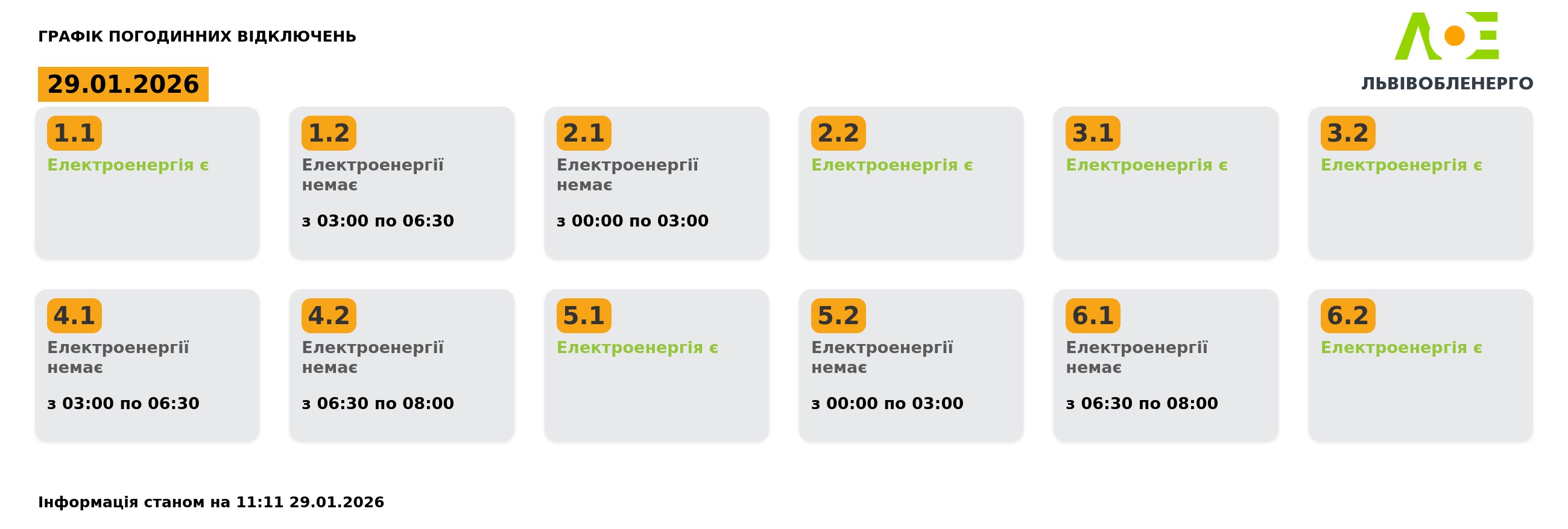 Світла буде більше. «Львівобленерго» втретє оновило графіки на 29 січня