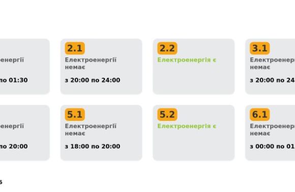 Група 5.1. Електроенергії немає з 18:00 до 20:00.