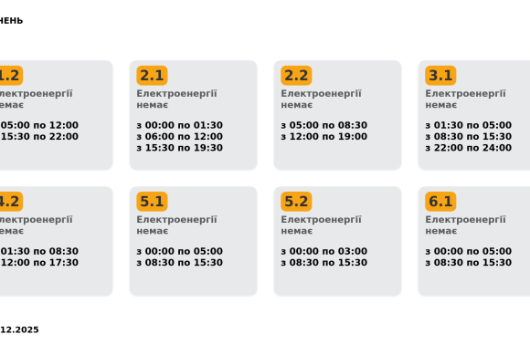 Графік погодинних відключень 08.12.2025