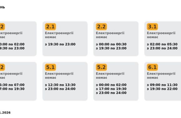 Для груп 1.2, 2.2, 3.2, 4.1 та 5.2 часові проміжки залишилися без змін у порівнянні з оновленням об 11:21.