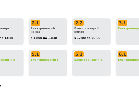 Група 2.1. Електроенергії немає з 11:00 до 13:30.