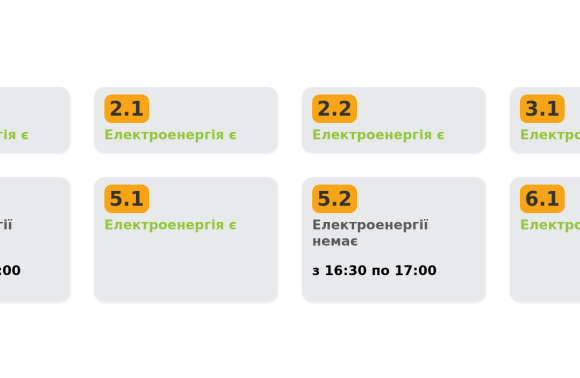 Група 5.2. Електроенергії немає з 16:30 до 17:00.