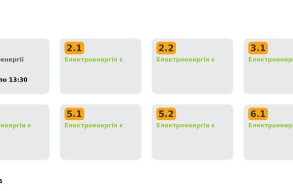 Зокрема, вимикатимуть світло на дві години групі 1.2 - з 11:00 до 13:00. Три години без світла буде група 4.1 - з 17:00 до 20:00. А споживачі групи 3.2 будуть без електроенергії аж 3,5 години - з 13:30 до 17:00.