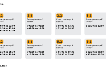 Група 6.2. Електроенергії немає з 02:30 до 06:00, з 13:00 до 16:30.