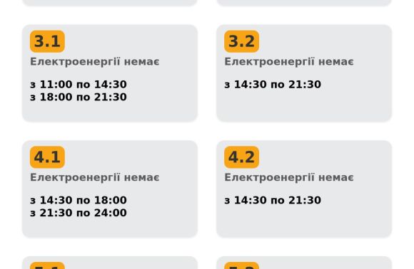 Максимальна відсутність електропостачання для однієї підгрупи споживачів на Львівщині становить 7 годин.