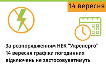 Завтра, 15 вересня, заходи обмеження споживання електроенергії не будуть застосовувати.