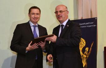 Довідка: «Всеукраїнською громадською організацією «Асоціація платників податків України» у 2011 році започатковано щорічний Всеукраїнський рейтинг «Сумлінні платники податків». Щороку в 11 номінаціях визначаються кращі платники податків з усіх регіонів України. Всеукраїнський Рейтинг проводиться у два конкурсні тури. Перший – на обласному рівні, другий тур – на всеукраїнському рівні. У Львові нагороджували переможців другого туру всеукраїнського рейтингу «Сумлінні платники податків 2014» Львівської, Івано-Франківської та Закарпатської областей України».