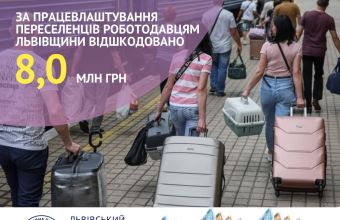 Для виплати компенсації витрат з оплати праці переселенців Львівська область профінансована на суму 8,4 млн грн. З них 8 млн грн вже надійшли на рахунки підприємств, де працюють внутрішньо переміщені особи.