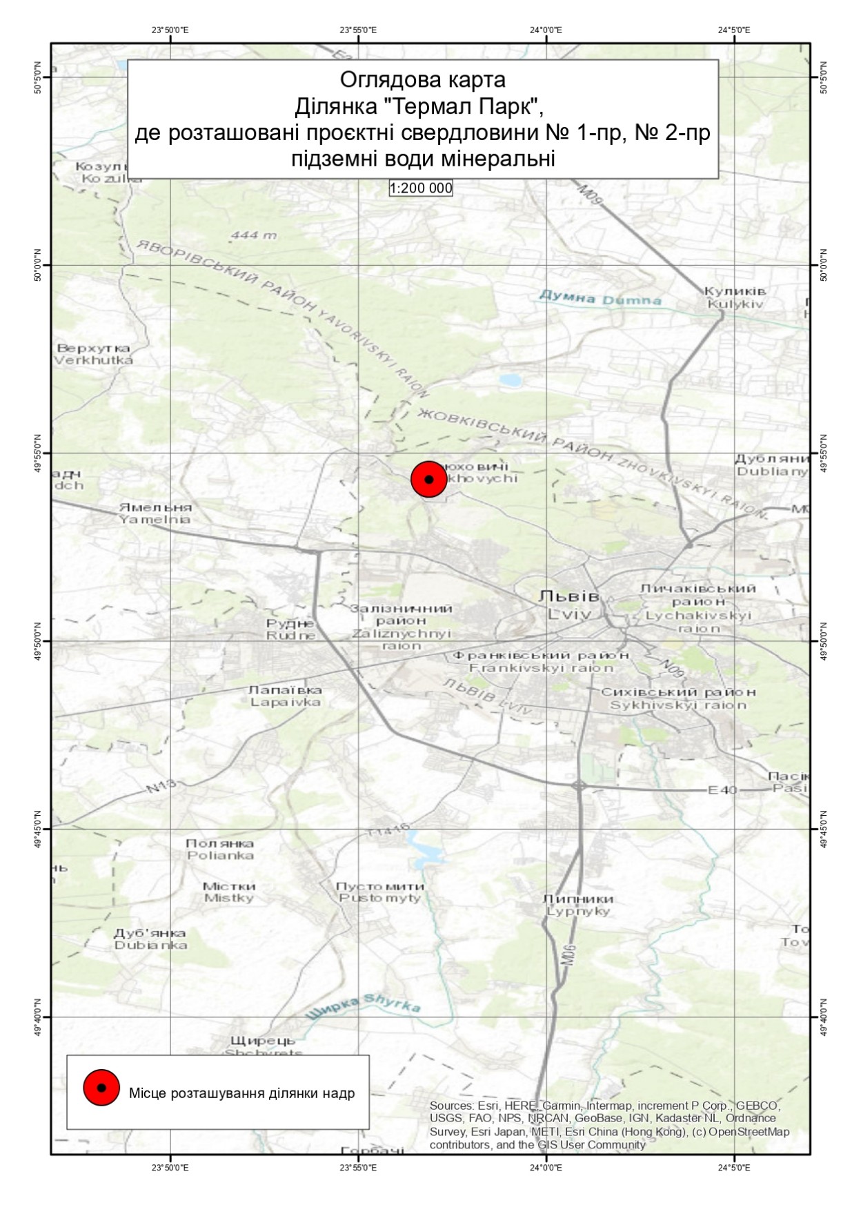 Як зазначають на сайті Prozzoro, ділянка «Термал Парк», де розташовані проєктні свердловини № 1-пр, № 2-пр, розташована на півночі селища Брюховичі у Львівському районі Львівської області.