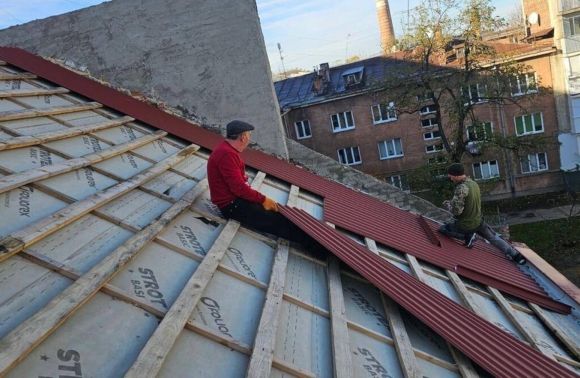 Станом на зараз за кошти з резервного фонду міського бюджету у сумі 714,1 тис. грн тут відновлюємо дах. Зокрема вже замінено весь дерев'яний конструктив покрівлі, постелено захисну плівку та змонтовано ринви і потиньковані димоходи. А зараз вже тривають роботи з монтажу металевого покриття. Тобто відбувається фінальний етап перекриття даху», - повідомили у Залізничній районній адміністрації.