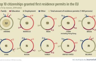 Загалом 2019 року в ЄС було видано близько 3 мільйонів перших посвідок на проживання для громадян, які не входять до ЄС. Це число виросло на 6% (або 163 000) в порівнянні з 2018 роком, продовжуючи тенденцію до зростання, що спостерігається з 2013 року.