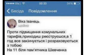 «Ми вимагаємо тільки прозорих підрахунків наших комунальних послуг, хочемо, щоб влада ці прозорі підрахунки надала, щоб сформувала ціни і ознайомила з ними людей. За нашими підрахунками, тарифи завищені утричі».