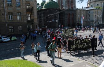 «1 червня вулицями Львова пройшов соціальний марш протесту проти підняття комунальних тарифів. Хода стартувала від пам'ятника Івану Франкові.