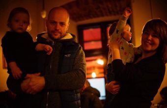 На світлині з Фейсбуку: Тарас Китриш з сім'єю у львівській кав'ярні "Світ кави".