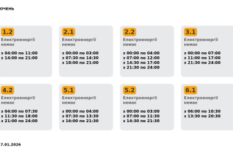 | Група | Відключення (часові проміжки) | Загальна тривалість |