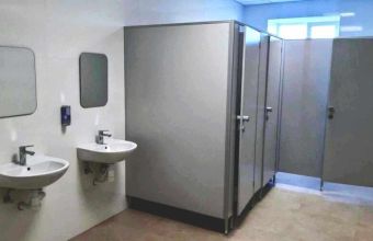 Тут облаштували чотири санвузли по три кабінки в кожному. Зокрема, дві кабінки облаштовані для дітей з інвалідністю. Також встановили вісім умивальників, бойлери для підігріву води та нові світильники.