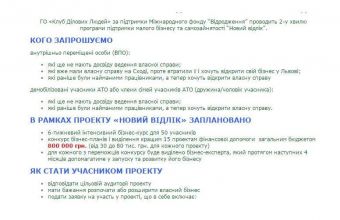 «Окрім переселенців, організатори цього разу запрошують до участі демобілізованих учасників АТО або членів їхніх родин. Важлива умова для всіх учасників – бажання відкрити власну справу.