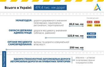 Всього в Україні сьогодні 419,4 тис. км доріг. Всі вони у зоні відповідальності різних інституцій.