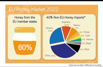 Згідно з Eurostat та графікам асоціації F.E.E.D.M. (European Federation of Honey Packers and Distributors) імпорт меду в країни ЄС з країн, які не є членами ЄС, у 2022 становив 40%.