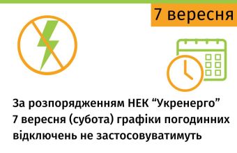 Укренерго обіцяє не вимикати електроенергію 7 вересня