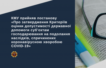 Кабмін прийняв постанову «Про затвердження Критеріїв оцінки допустимості державної допомоги суб’єктам господарювання на подолання наслідків, спричинених коронавірусною хворобою COVID-19».