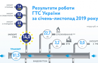 Зазначається, що імпорт газу зріс на 38% – загалом за одинадцять місяців 2019 року в Україну імпортовано 14 мільярдів кубометрів блакитного палива. При цьому, надходження природного газу в ГТС від газовидобувних підприємств України з початку року і станом на 1 грудня 2019 року у порівнянні з позначкою роком раніше залишилося на такому ж рівні – 18,9 млрд. кубометрів.