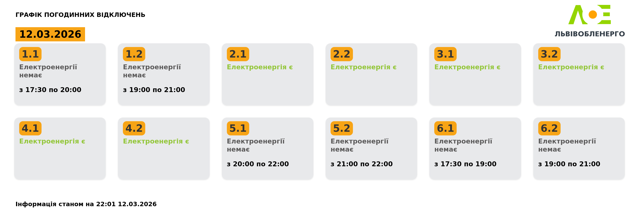 Львівобленерго опублікувало графік відключень електроенергії 12 березня