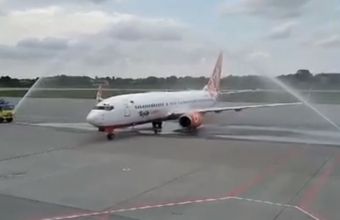 Як у Львові поливали перший літак з Ель-Касима (відео)