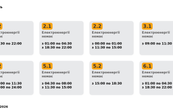 Група 2.1. Електроенергії немає з 01:00 до 04:30, з 18:30 до 22:00.