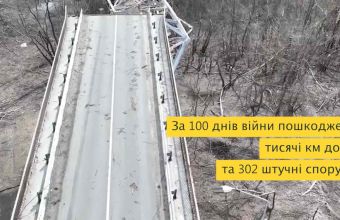 "За 100 днів активних бойових дій на території країни пошкоджено або повністю зруйновано тисячі кілометрів автошляхів, 7 тисяч км залізничних колій, 302 автомобільні і 49 залізничних мостів, 11 аеропортів і 21 залізничний вокзал, при цьому захоплено чотири морські порти", - повідомили у Міністерстві інфраструктури.