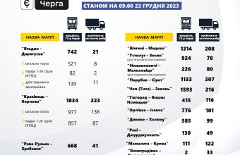У черзі на чотирьох міжнародних пунктах пропуску на українсько-польському кордоні станом на 9.00 23 грудня перебуває 4558 вантажівок.