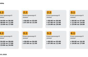 Група 1.2: загальна тривалість 7 год (раніше 9 год). Денне вимкнення скорочено на 2 год, воно триватиме до 17:00 замість 19:00.