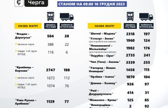 Укртрансбезпека поінформувала про кількість вантажних і пасажирських транспортних засобів, що перетнули кордон за допомогою системи електронної черги за попередню добу з 00:00 до 23:59 9 грудня, пише DailyLviv.com.