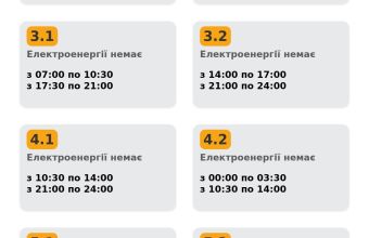 Група 3.2: відключення заплановані з 14:00 по 17:00 та з 21:00 по 24:00. Всього 6 годин без світла.