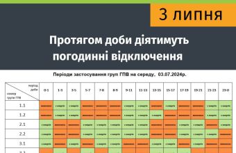 За розпорядженням НЕК „Укренерго“, через значний дефіцит потужності буде застосовано погодинні вимкнення.