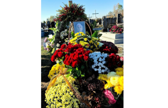 Довго стояли люди коло уквітчаної могили в обіймах променів сонця. Не хотіли розходитися.