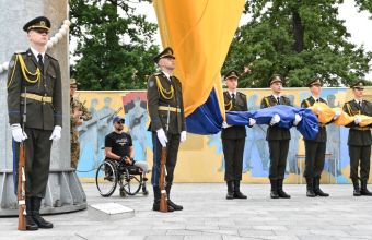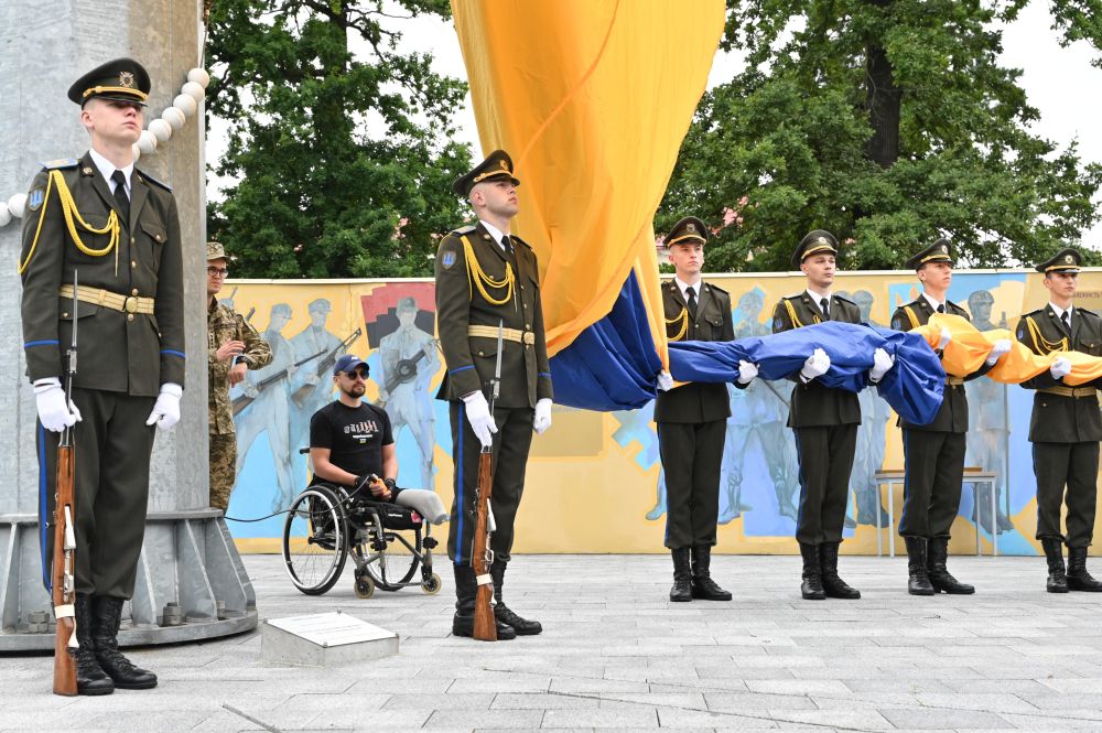 До підняття прапора України був запрошений ветеран російсько-української війни Олександр Куцал, який воював на Донбасі, зокрема під Бахмутом, а під час мінометного обстрілу втратив обидві ноги.