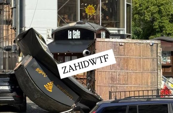 Одні повідомляють, що порив вітру зірвав дах кіоску, і він упав на припаркований поруч автомобіль. Інші стверджують, що кіоск завалився після того, як у нього в'їхав бус.
