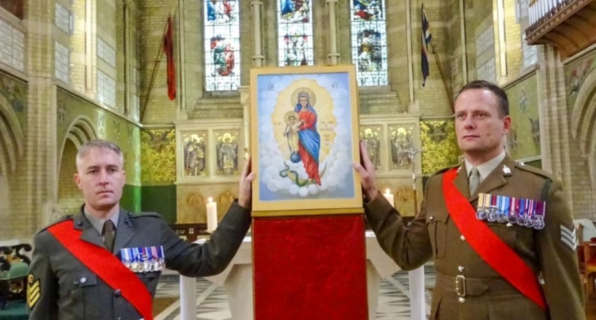 Українська ікона Божої Матері Переможної (Icon of Our Lady of Victories) знайшла домівку в Олдершоті, графство Гемпшир (Велика Британія) після ризикованої подорожі через розірвану війною Україну.