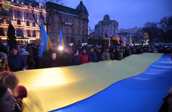 У вівторок, 22 січня, біля пам’ятника Тарасові Шевченку на проспекті Свободи у Львові відбулося громадському віче, учасники якого спільно помолилися за Україну та урочисто з'єднали синьо-жовтий «Живий стяг Соборності» розміром три на 10 метрів.