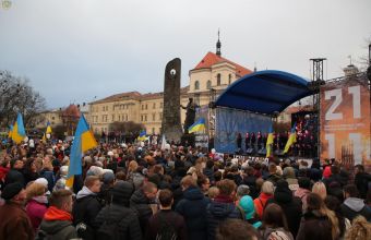 Сотні людей зібралися в четвер, 21 листопада, на площі біля пам’ятника Тарасові Шевченку, аби відзначити День Гідності та Свободи та вшанувати шосту річницю Революції Гідності.