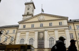 На міській ратуші Львові приспустили прапор міста і вивісили банер