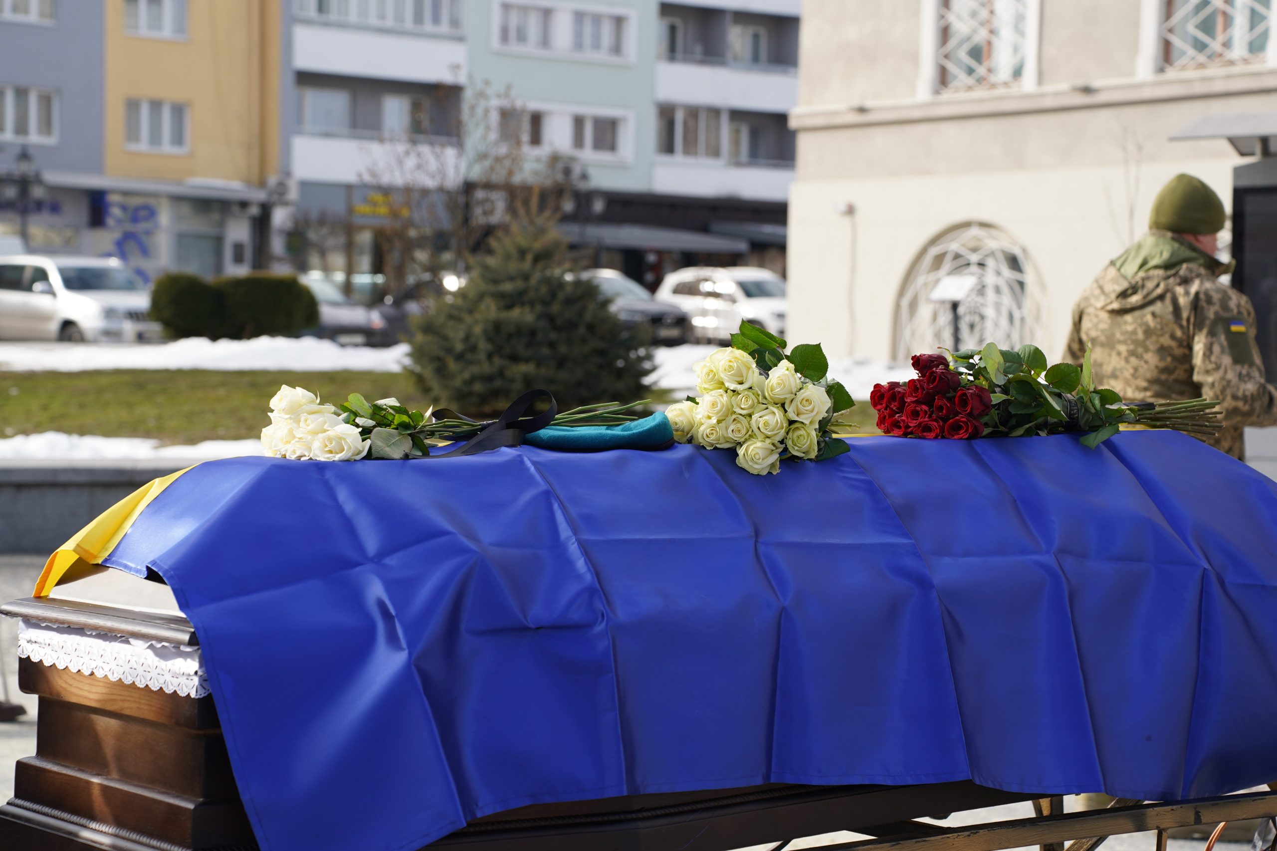 Під супроводом священнослужителів на перехресті провели спільну молитву, після чого кортеж попрямував до площі Ринок, де відбулось загальноміське прощання з воїном, який віддав найцінніше – власне життя.