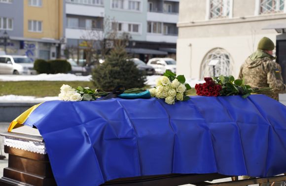 Під супроводом священнослужителів на перехресті провели спільну молитву, після чого кортеж попрямував до площі Ринок, де відбулось загальноміське прощання з воїном, який віддав найцінніше – власне життя.
