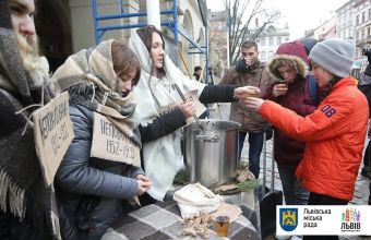 Сьогодні, у день 86-х роковин Голодомору, жертвами якого стали мільйони невинних українців, біля входу в міську раду відбулась акція — вуличний ресторан «Непораховані з 1932».