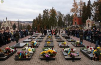 Представники обласної і міської влади, представники духовенства та громадськості, військові поклали квіти до могил загиблих під час Революції Гідності борців за волю України, похованих на полі почесних поховань № 67. Військові капелани та священники відслужили панахиду за новітніми героями, а також молились за мир на українській землі.